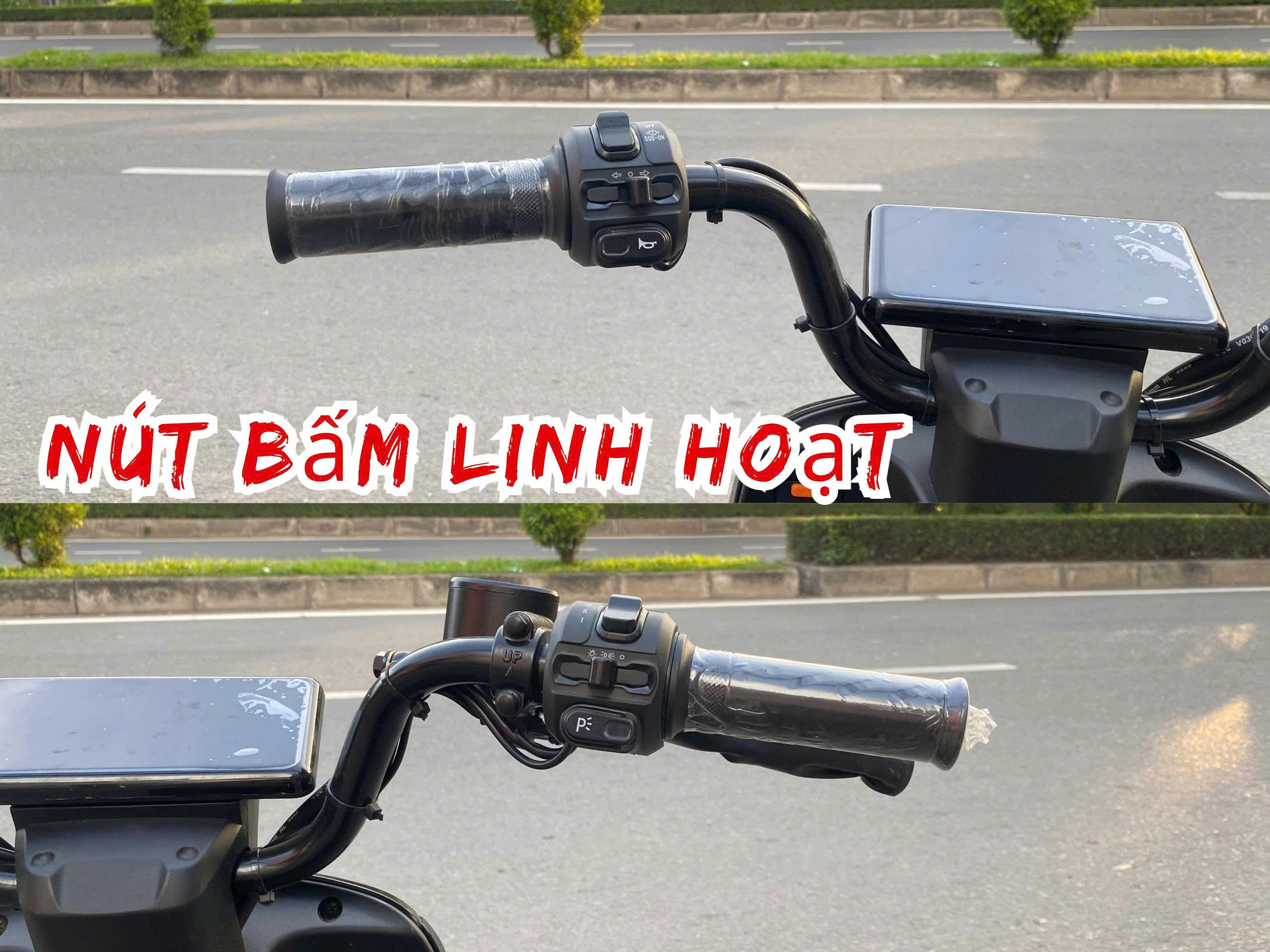 + Các nút chức năng: Bao gồm các nút bật/tắt đèn, còi, xi nhan, và các nút điều chỉnh chế độ lái (nếu có). Bố cục các nút bấm được tối ưu hóa để người dùng có thể làm quen và sử dụng nhanh chóng, mang lại sự tiện lợi và an toàn tối đa trong quá trình vận hành.