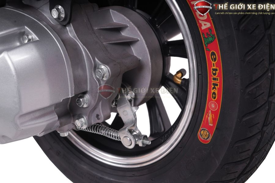 Bánh trước và sau sử dụng lốp không săm kích thước tiêu chuẩn, bám đường tốt ngay cả khi trời mưa. Cặp giảm xóc êm ái giúp xe vận hành ổn định trên nhiều loại địa hình, từ mặt đường nhựa phẳng đến các đoạn đường gồ ghề.
