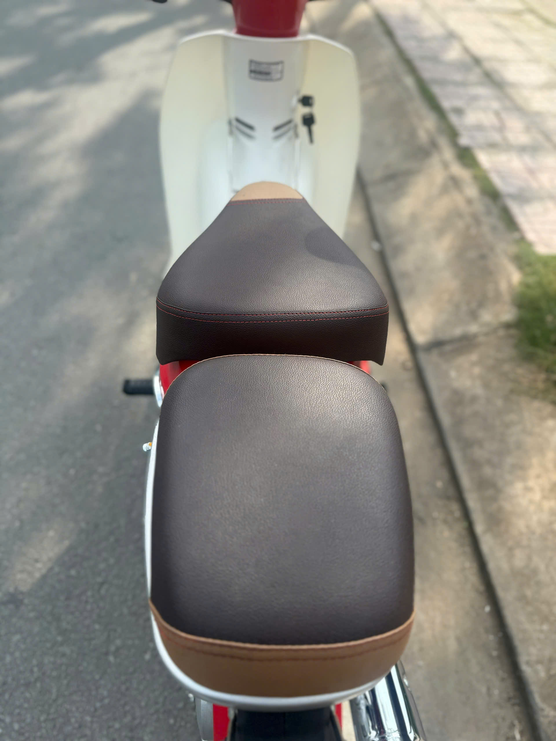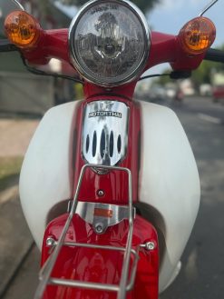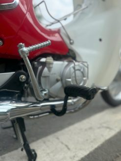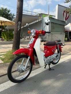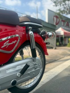 Về độ an toàn, mẫu xe này sử dụng phanh tang trống cho cả trước và sau – kiểu phanh quen thuộc, dễ kiểm soát lực bóp/đạp, phù hợp với người mới đi xe. Bên cạnh đó, xe được trang bị hệ thống giảm chấn thủy lực giúp xe chạy êm hơn khi đi qua đoạn đường xấu, gờ giảm tốc hoặc mặt đường không bằng phẳng. Trong điều kiện di chuyển phổ biến ở tốc độ vừa phải trong thành phố, chiếc Cub này tạo cảm giác “đằm”, không bồng bềnh, giúp bạn tự tin hơn khi cầm lái mỗi ngày.