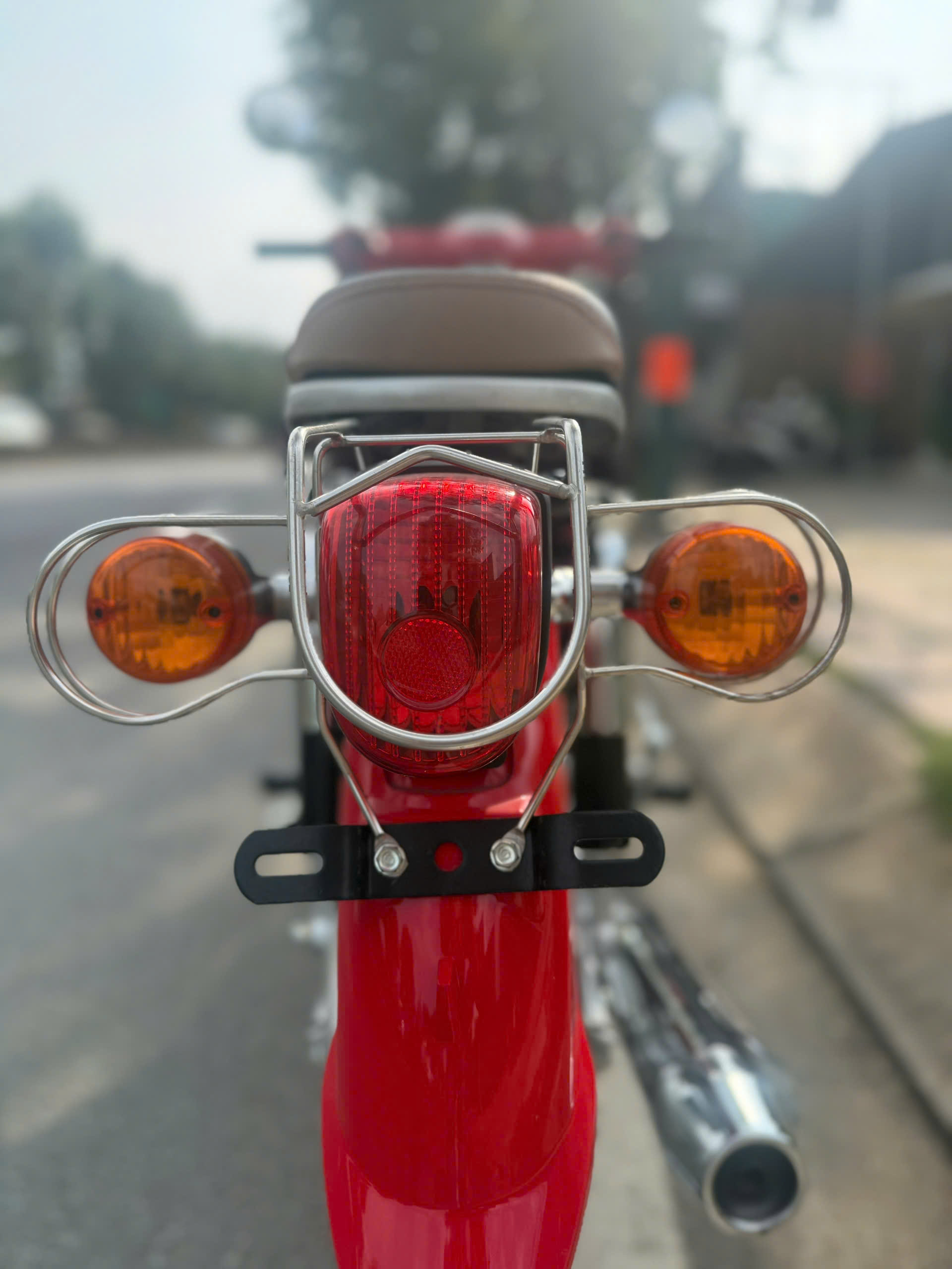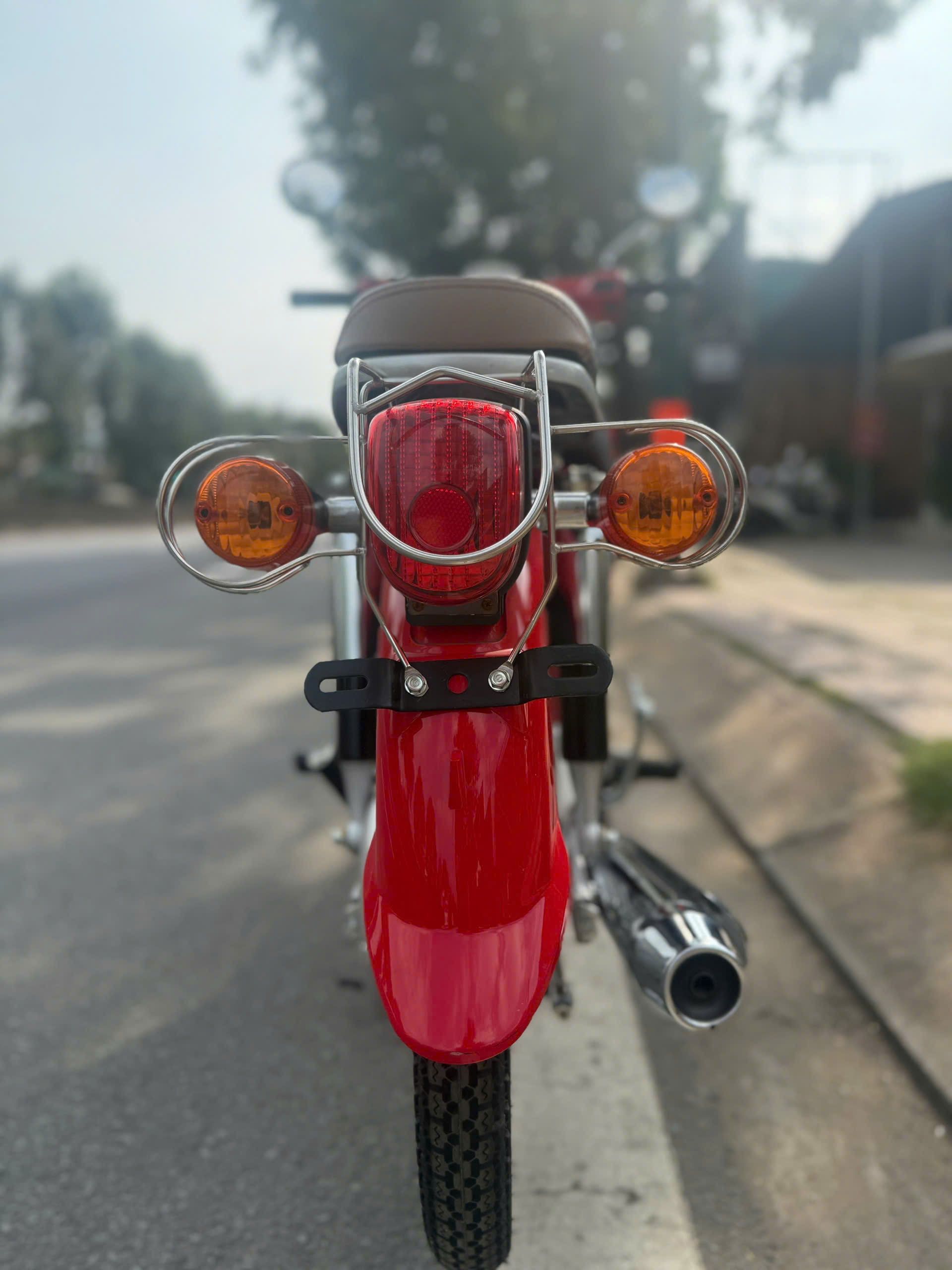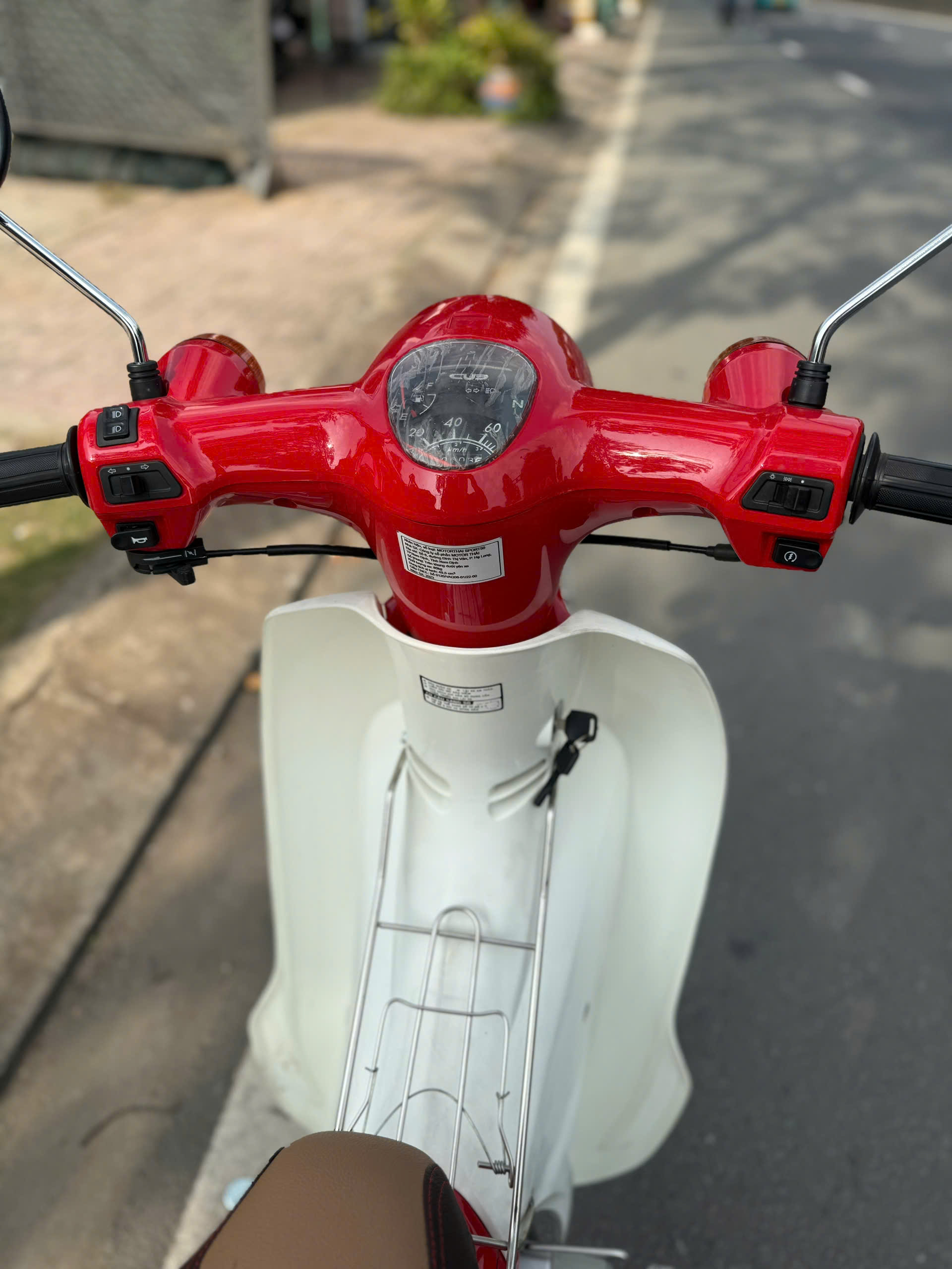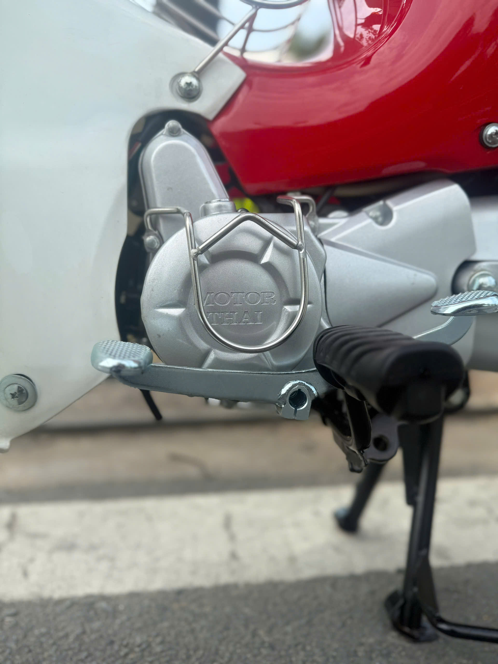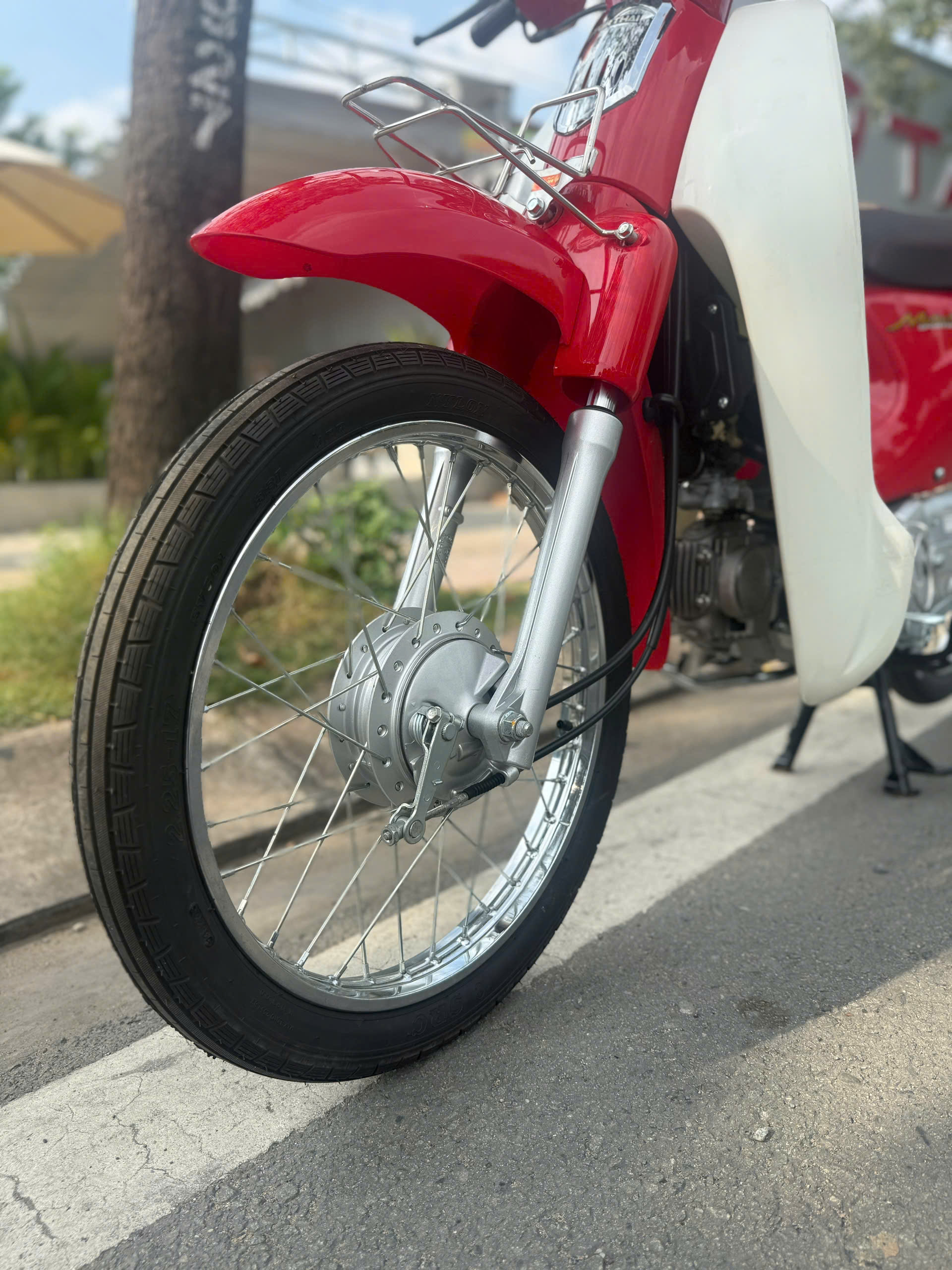Ngoài ra, chiếc xe còn tiện ở những chi tiết “đúng chất Cub”: thân xe bo tròn, các mảng ốp phối hài hòa, phần baga sau (tùy phiên bản) hỗ trợ chở đồ hoặc lắp thêm giỏ, rất hợp với học sinh – sinh viên hay mang cặp, áo mưa, túi xách. Nói một cách đơn giản, Cub Motor Thái vành đúc là mẫu xe hướng về sự thực dụng: dùng được lâu, không cầu kỳ, càng đi càng “hợp”.
