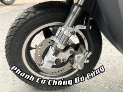 Đi kèm với đó là bộ lốp không săm kích thước 3.00-10 có độ bám cao, vận hành êm ái và giảm thiểu nguy cơ thủng xăm. Phuộc trước dạng ống lồng và phuộc sau lò xo thủy lực giúp giảm xóc hiệu quả, hạn chế rung lắc và tạo cảm giác ổn định khi chạy qua gờ giảm tốc, đá dăm hoặc mặt đường không bằng phẳng.